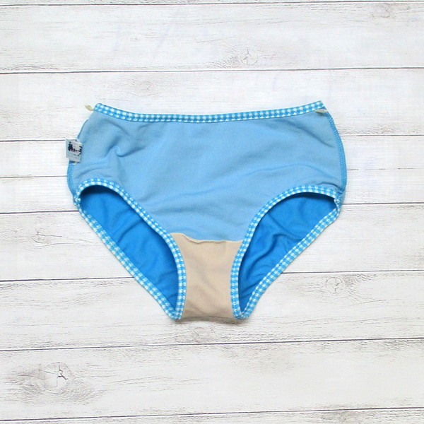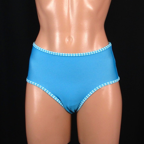 あい子ちゃん愛用 つるすべブルー チェックパイピング ビキニパンツ 130 c7280